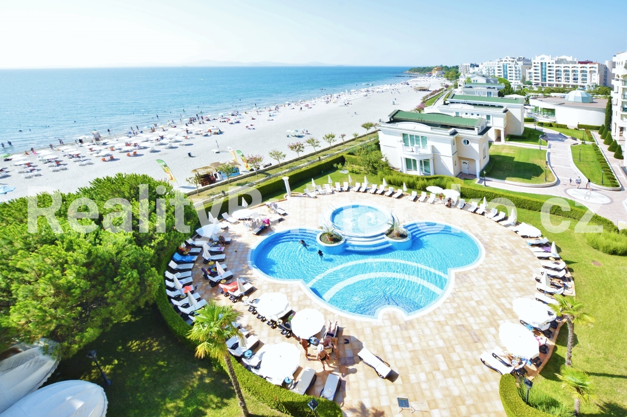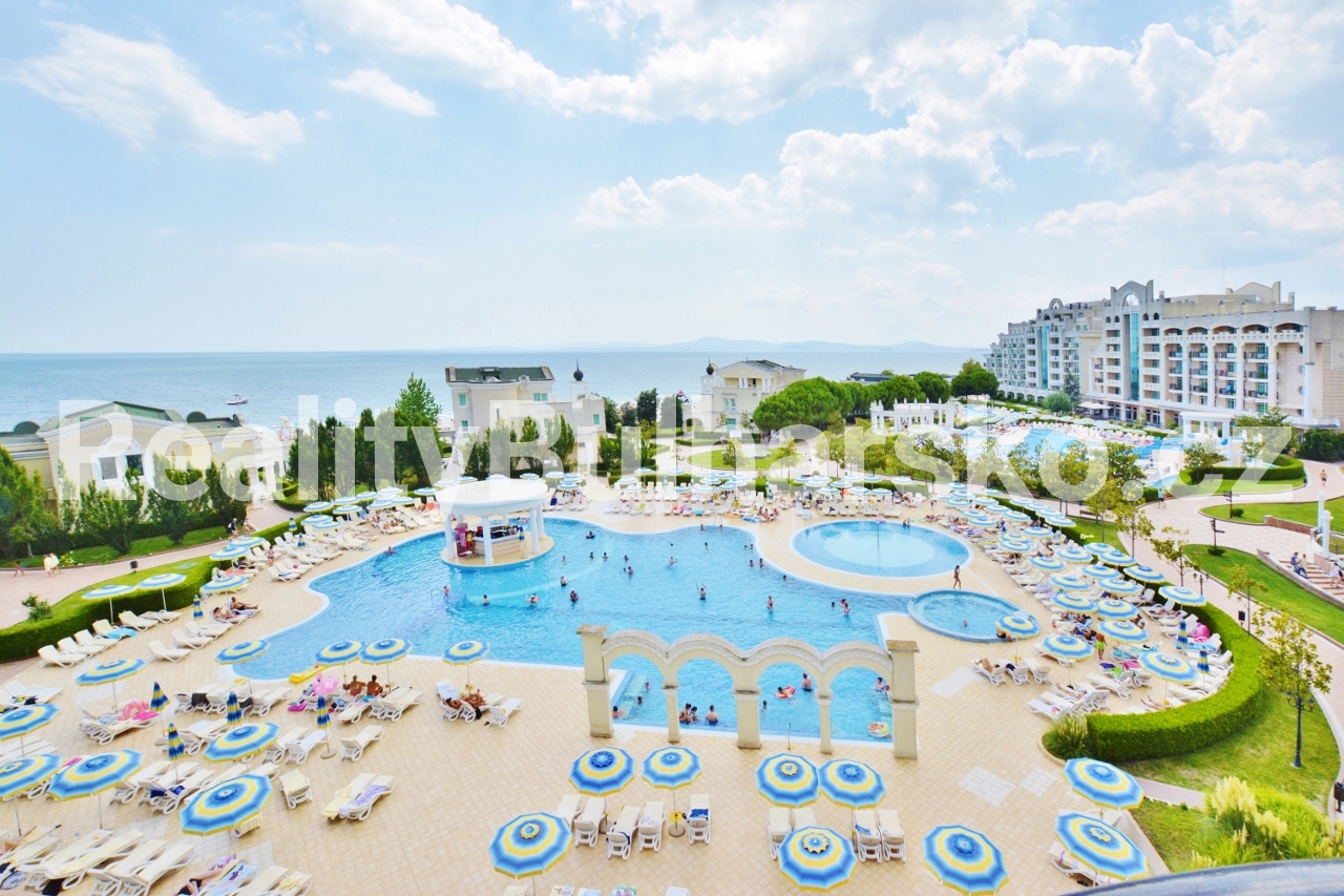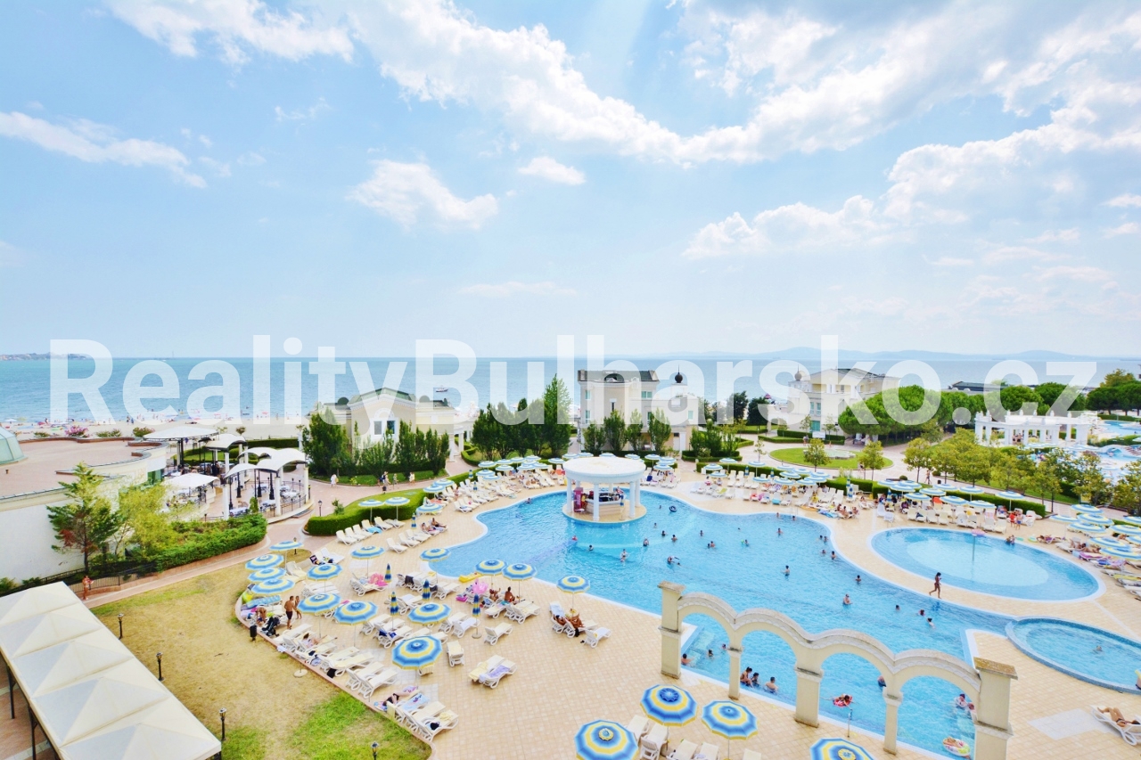 Apartmán se nachází v impozantním a prestižním 5*** SPA rekreačním komplexu hotelového stylu**, situovaném přímo u moře. Komplex nabízí vysoký standard bydlení a relaxace, včetně několika venkovních bazénů, SPA zóny a hotelových služeb.