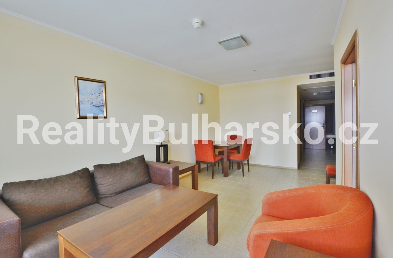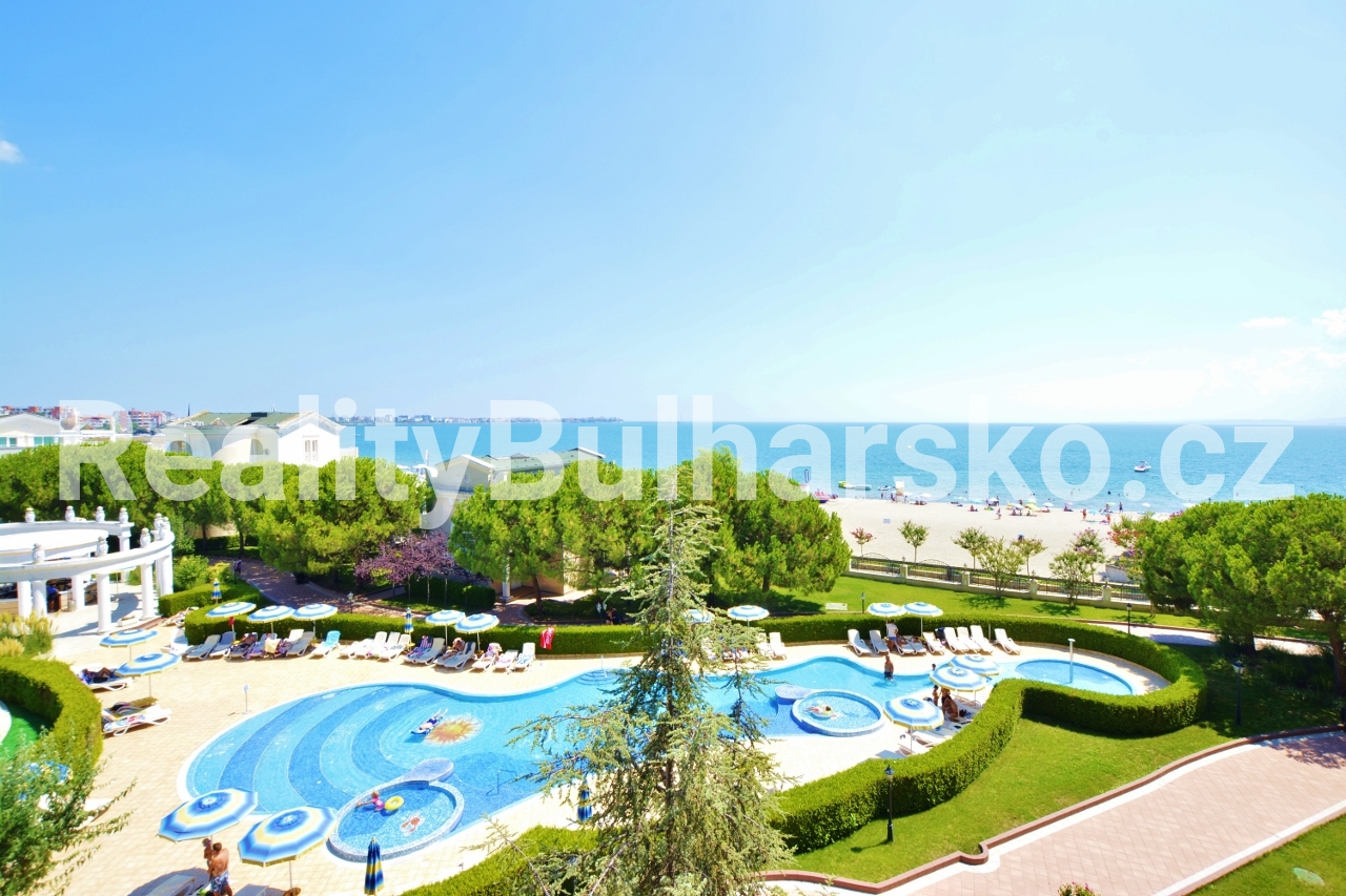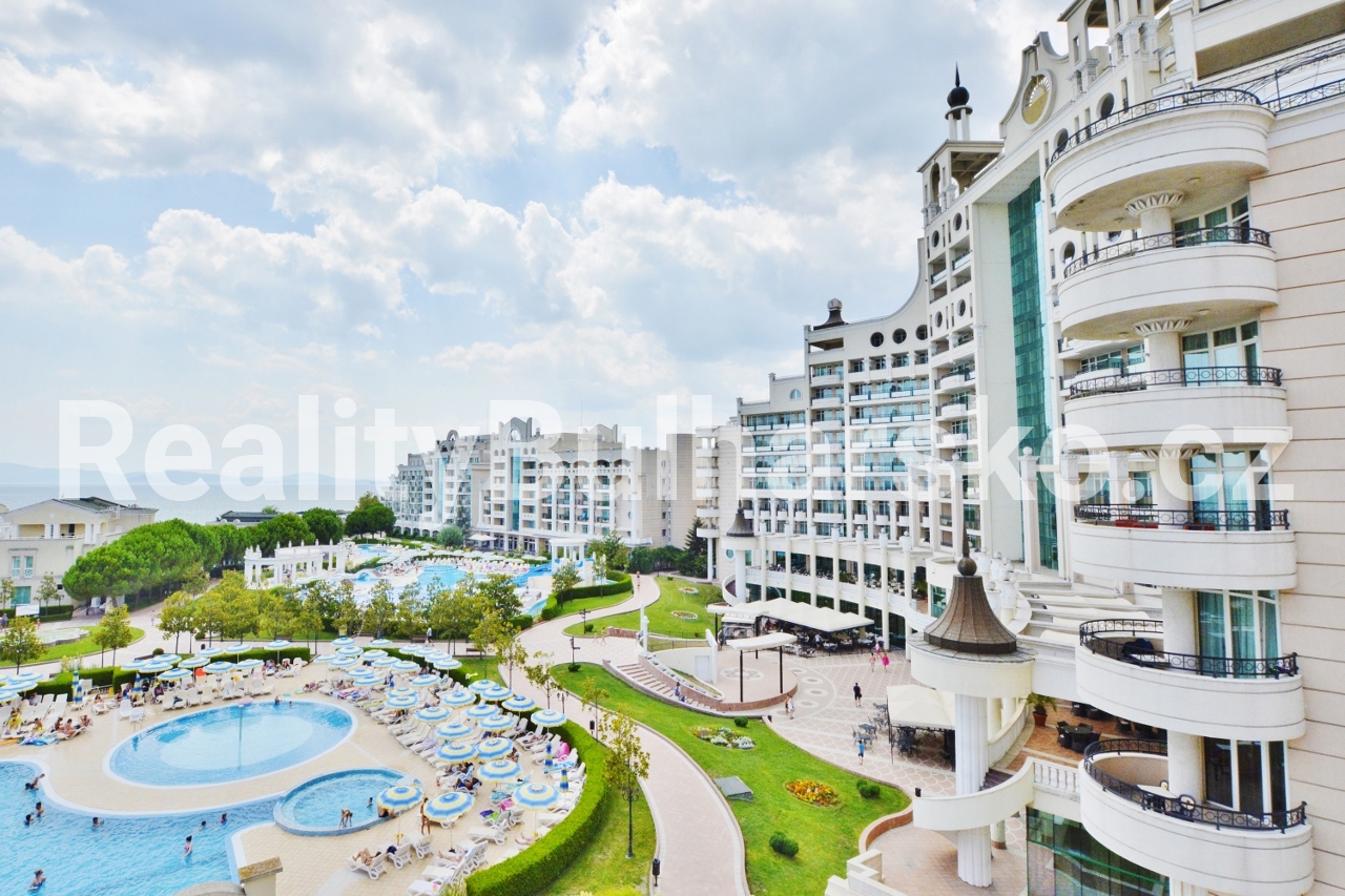 Apartmán se nachází v impozantním a prestižním 5*** SPA rekreačním komplexu hotelového stylu**, situovaném přímo u moře. Komplex nabízí vysoký standard bydlení a relaxace, včetně několika venkovních bazénů, SPA zóny a hotelových služeb.