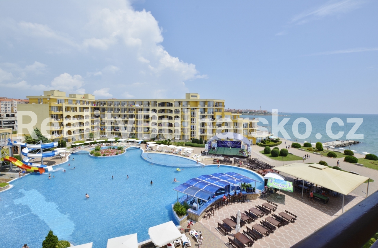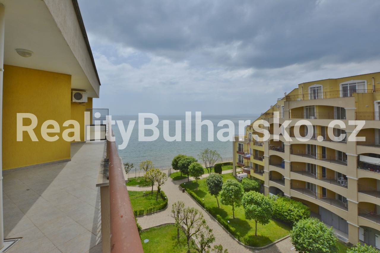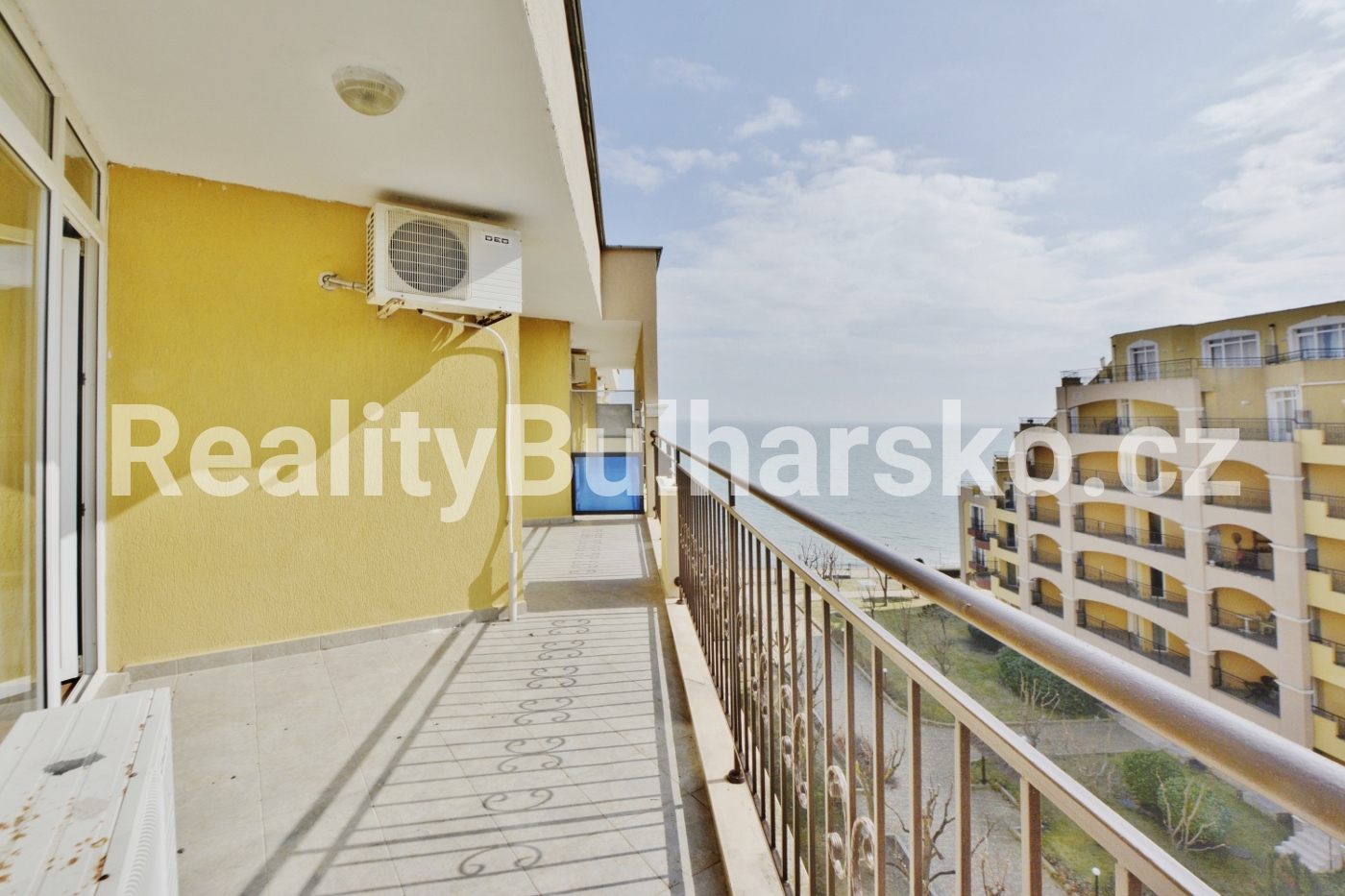 Na prodej velmi prostorný a plně zařízený apartmán 2+kk (79 m²) s velkým balkonem a bočním výhledem na moře, který se nachází v udržovaném rekreačním komplexu hotelového stylu přímo u moře.